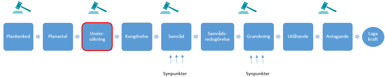 Granskning nr 2 har skett under tiden 30 juni till och med 11 augusti 2025. Planförslaget har tidigare varit utställd för granskning under tiden 23 december 2024 till och med 24 januari 2025. Efter granskningen har planförslaget reviderats vilket innebär att en ny granskningstid krävs då det inte är att anse som mindre justering.
